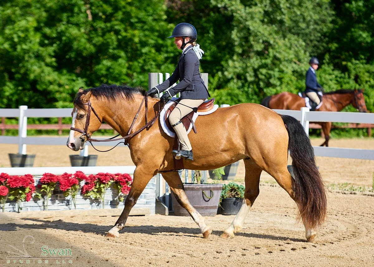 Great quality pony! HUGE stride, beautiful movement and an excellent jumping style. Boo is a barn favorite. He never needs to see the jumps, simple to ride and loves to work. A quiet, responsive type that is ready to win in the large green pony divison. He is could easily do a short stirrup job with his kind, sweet way of going or be your pony finals winner.