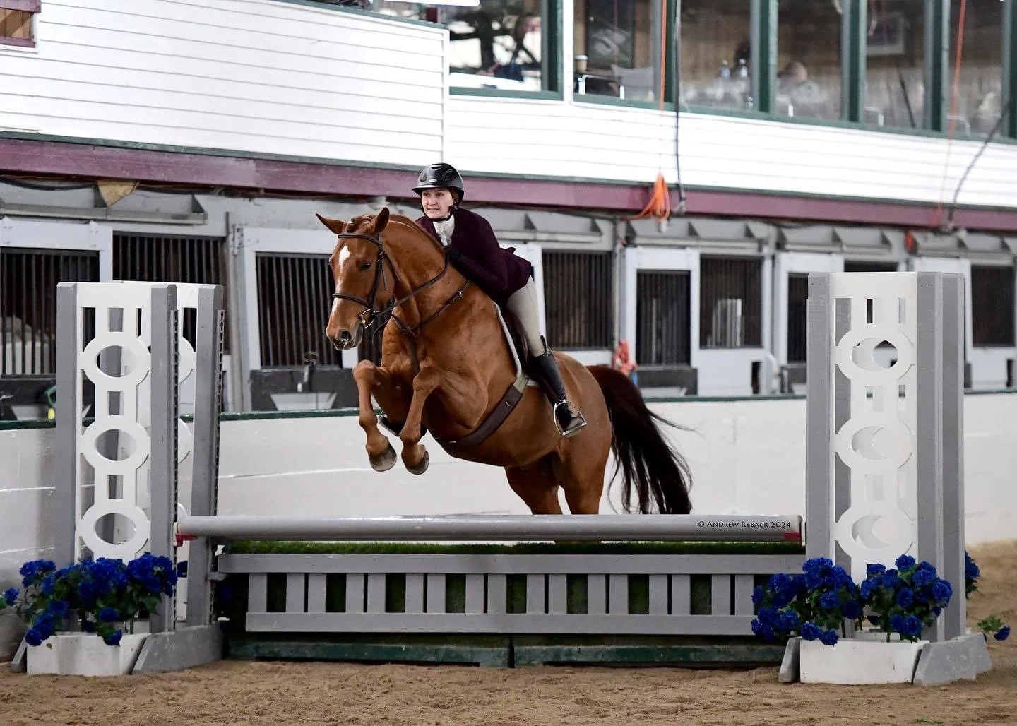 Fabulous 16.2 hand horse. Hunter/Equitation/Jumper. Finish her anyway you like! She will school whatever height you build. EASY and BRAVE! Super jump, tons of scope and quiet to ride. Successfully shown in the 2’6 baby greens in 2024. Now sucsessfully showing with a 12 year old in the .90 jumpers and eq. Poppy is sweet horse with a great mind, big stride, big scope & lots of heart. Amateur/junior friendly. Price will increase with training.